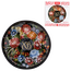- Farbe: Schwarzer Hintergrund mit buntem Blumenmuster & goldener Schrift