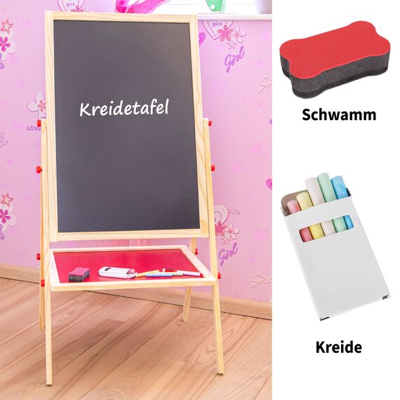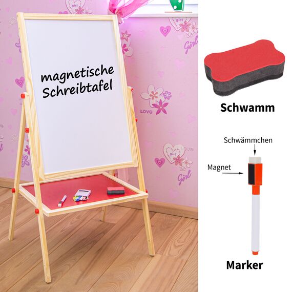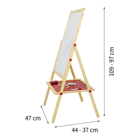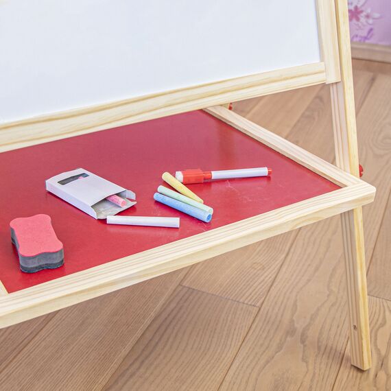 Kinder Holzstaffelei, Zeichenbrett, 2-seitig, mit Aufbewahrungsregal u. Zubehör, 47 x 44 x 109 cm