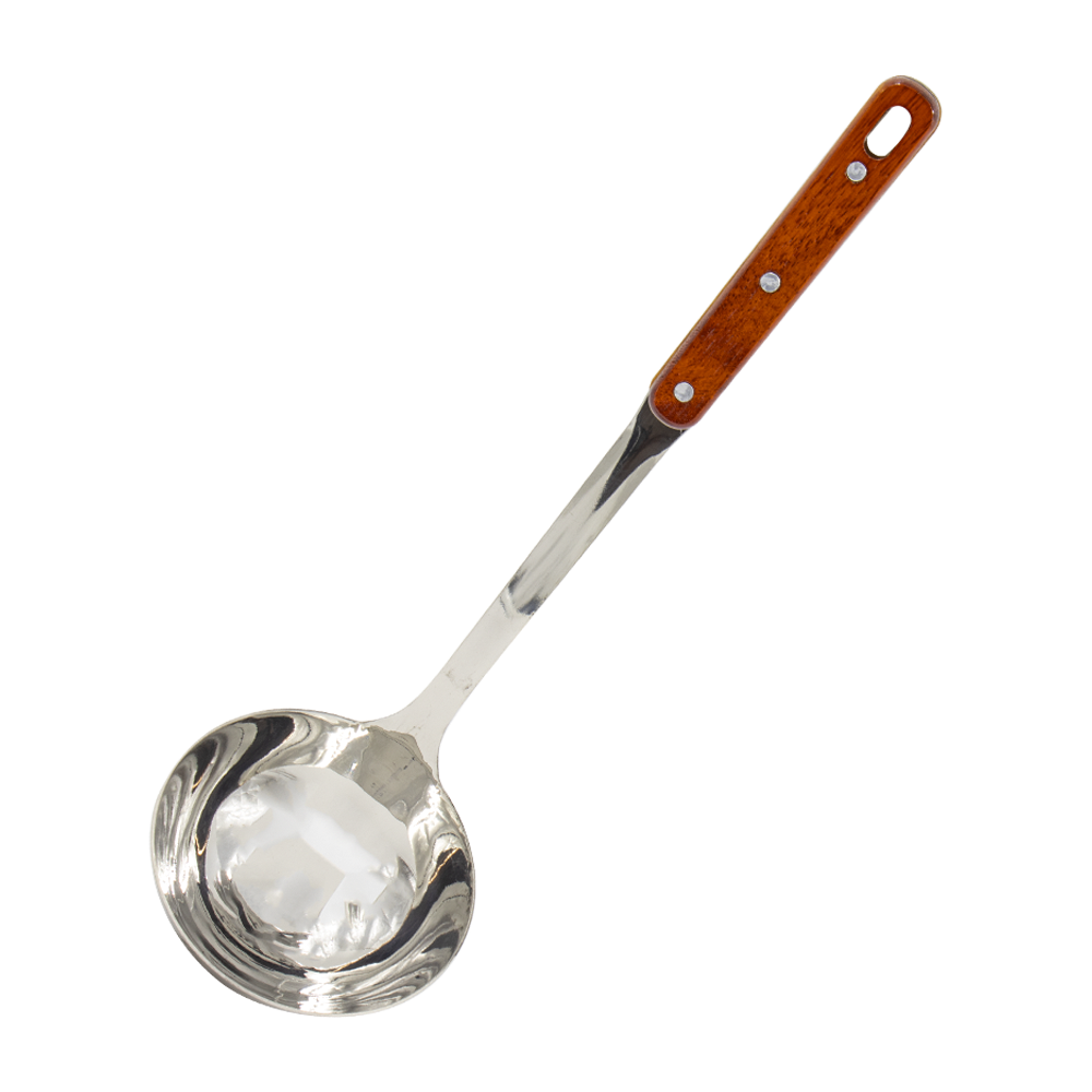 Schöpfkelle, Edelstahl mit Holzgriff, 34,5 cm