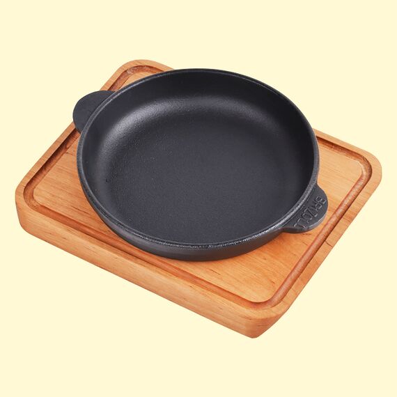 Gusseisen Servierpfanne mit Holzablage Brizoll H1625-D, 16 x 2,5 cm