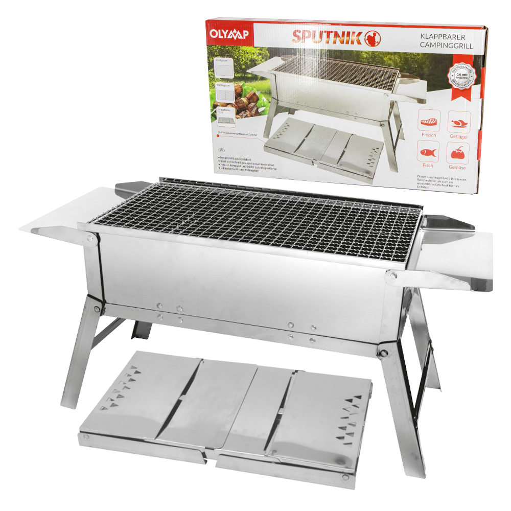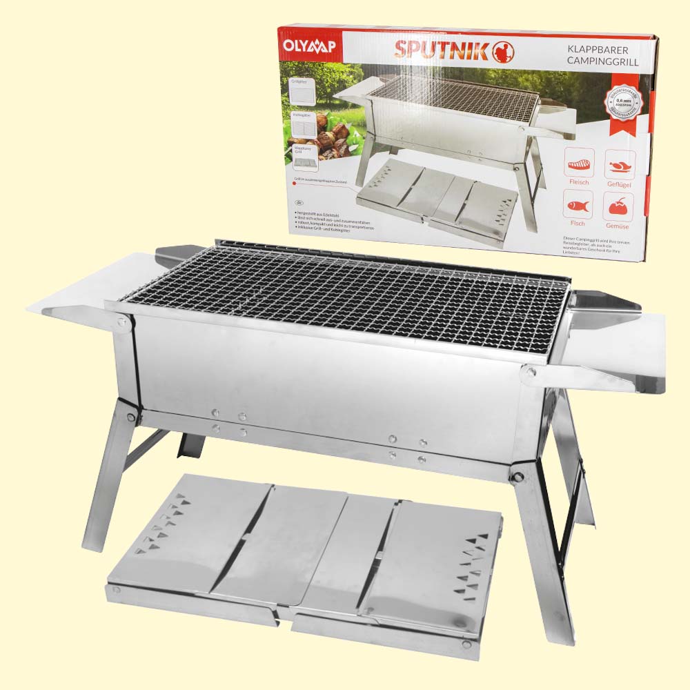 Klappbarer Campinggrill SPUTNIK aus Edelstahl 0,6 mm, 67,5 x 25,5 x 32 cm, 3,4 kg
