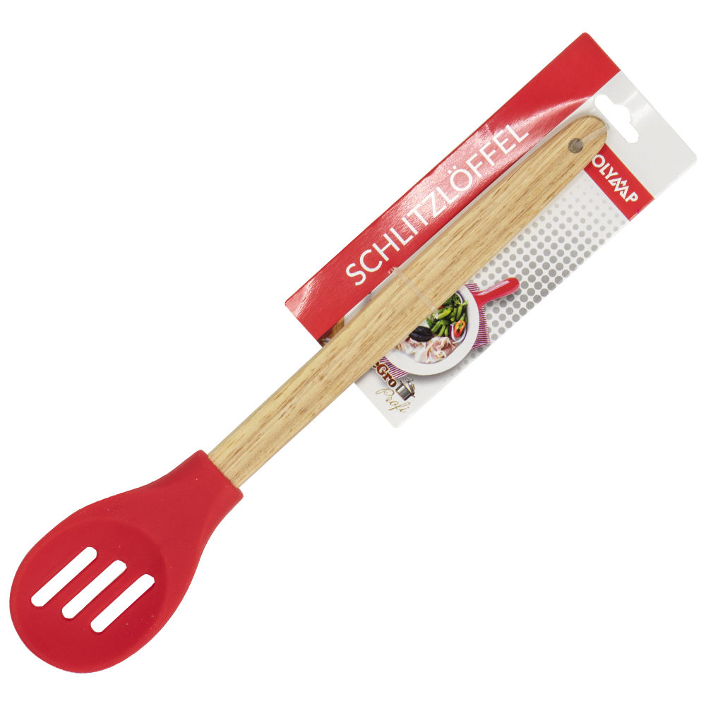 Schlitzlöffel aus Silikon mit Holzgriff, 31 x 5 x 2 cm