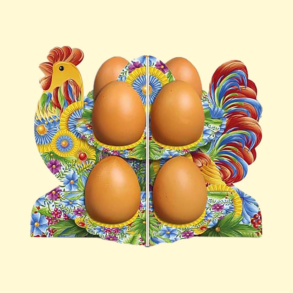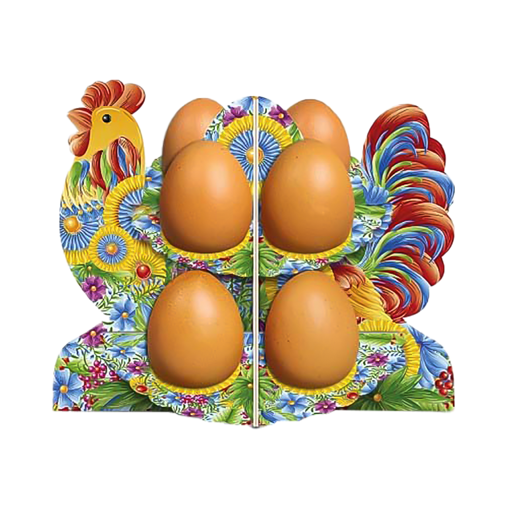 Deko-Ständer für 8 Eier - Petrikovka-Hahn aus Karton