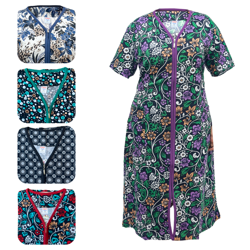 Sommer Hausmantel, Reißverschluss, versch. Designs, 100% Baumwolle, 2 - 7 XL