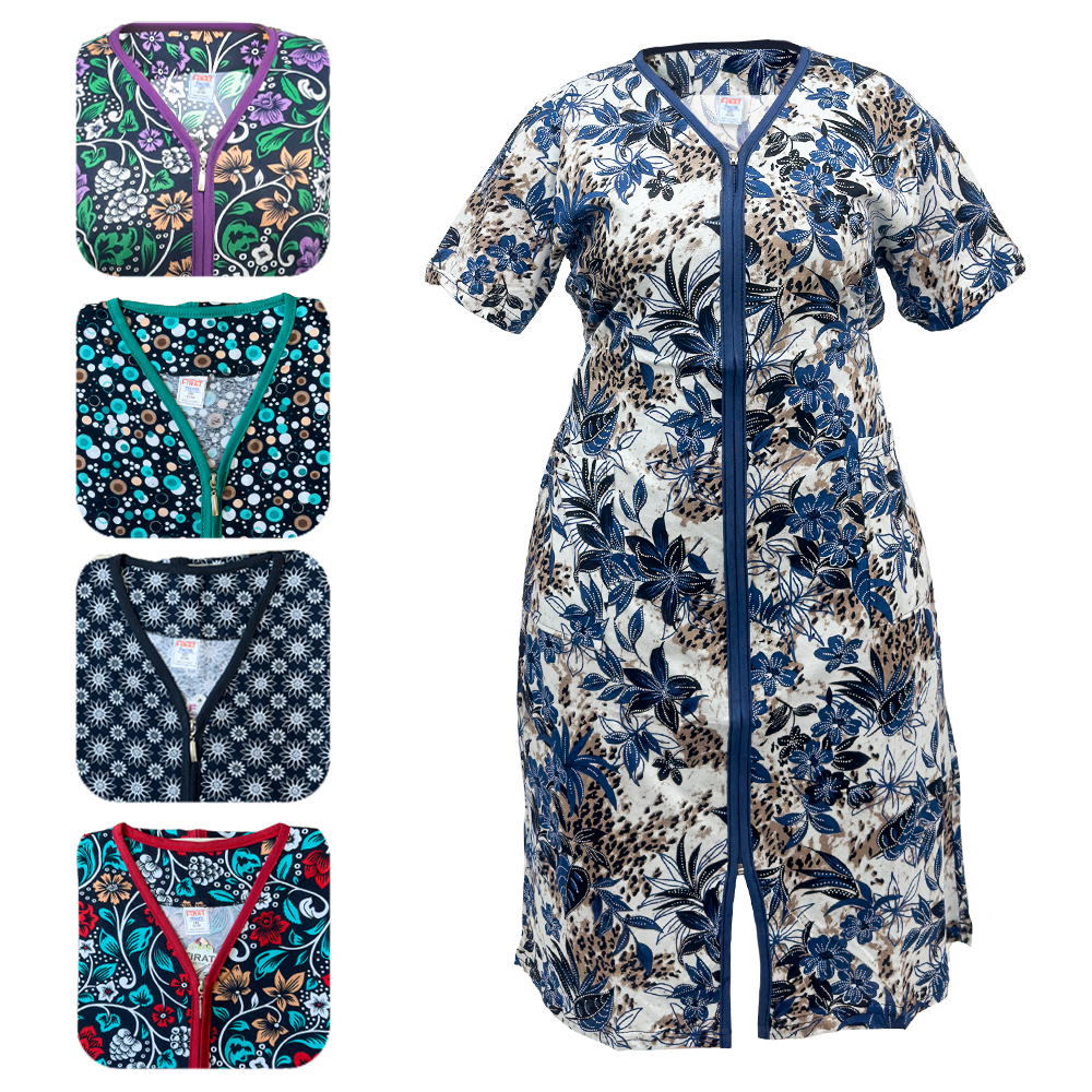 Sommer Hausmantel, Reißverschluss, versch. Designs, 100% Baumwolle, 12XL, 13XL, 14XL