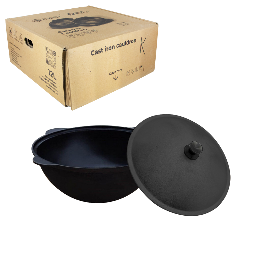 Uzbekischer Kasan 10 L aus Gusseisen, runder Boden. mit Aludeckel.