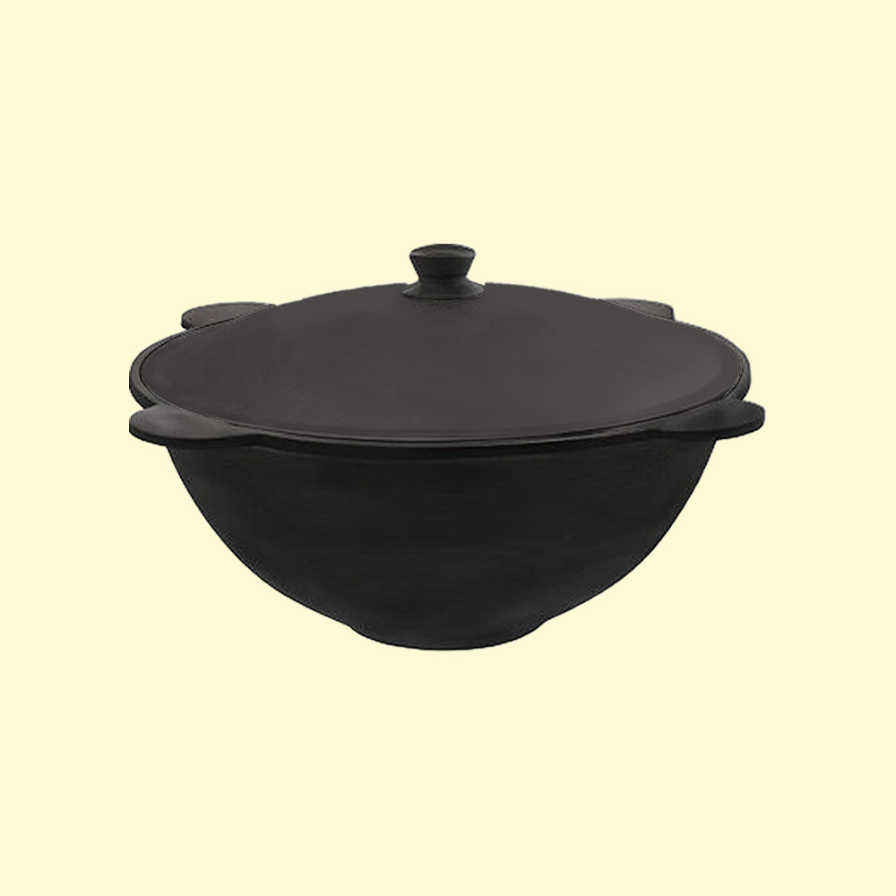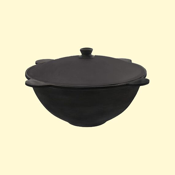 Uzbekischer Kasan 10 L aus Gusseisen, runder Boden. mit Aludeckel.