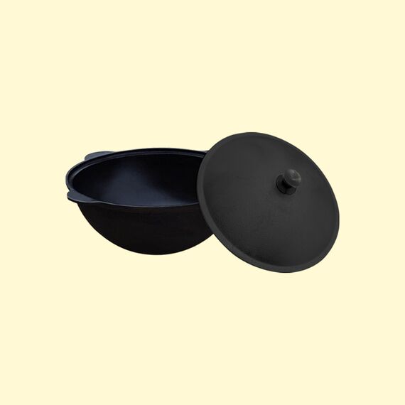 Uzbekischer Kasan 8 L aus Gusseisen, runder Boden. mit Aludeckel *