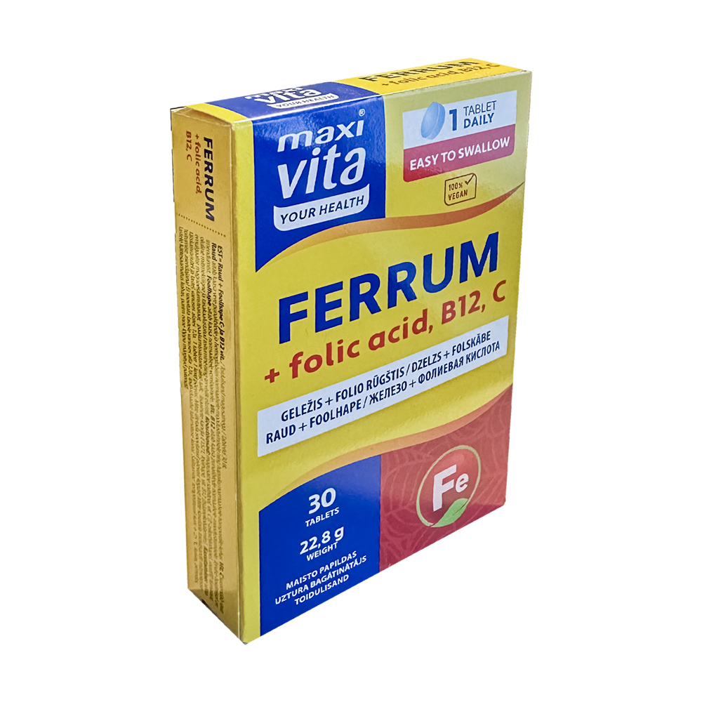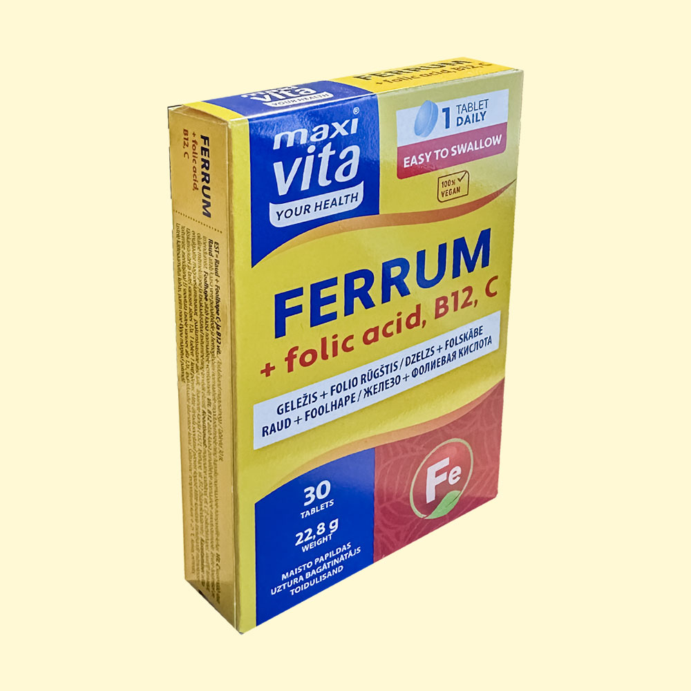 Inhaltsstoffe: Süßungsmittel: Sorbitol*, L-Ascorbinsäure, Eisenfumarat, Trennmittel: Magnesiumsalze von Speisefettsäuren, Polyethylenglykol, Talkum, Pteroylmonoglutaminsäure, Cyanocobalamin. Zuckerfrei.