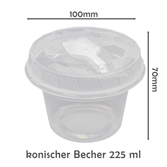 Einweg Feinkostbecher Set Becher mit Deckel Ø95mm und Löffel, 225ml, 50St Nicht für Internetverkauf