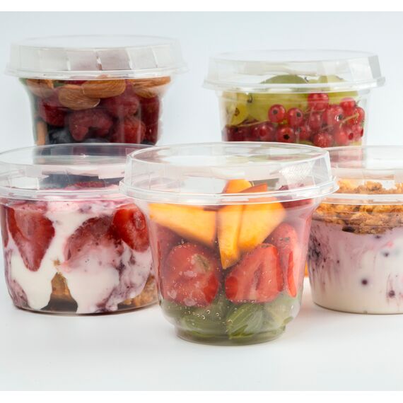 Vielseitig, ideal zum Servieren von Smoothen, Salaten, Eiscreme, Desserts und Joghurt, zum Mitnehmen oder für die Präsentation von portioniertem Gemüse, Obst, Snacks sowie losen und nicht verderblichen Produkten.