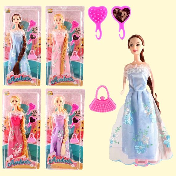 Die Puppe Amber ist 29 cm groß und kommt mit vielfältigem Zubehör. Sie ist in 4 attraktiven Farben erhältlich und bietet unzählige Spielmöglichkeiten. Die Verpackung hat die Maße 34x16x5 cm, ideal für Geschenke und einfache Aufbewahrung. Mit dieser Puppe können Kinder ihre Kreativität und Fantasie entfalten.Eigenschaften: