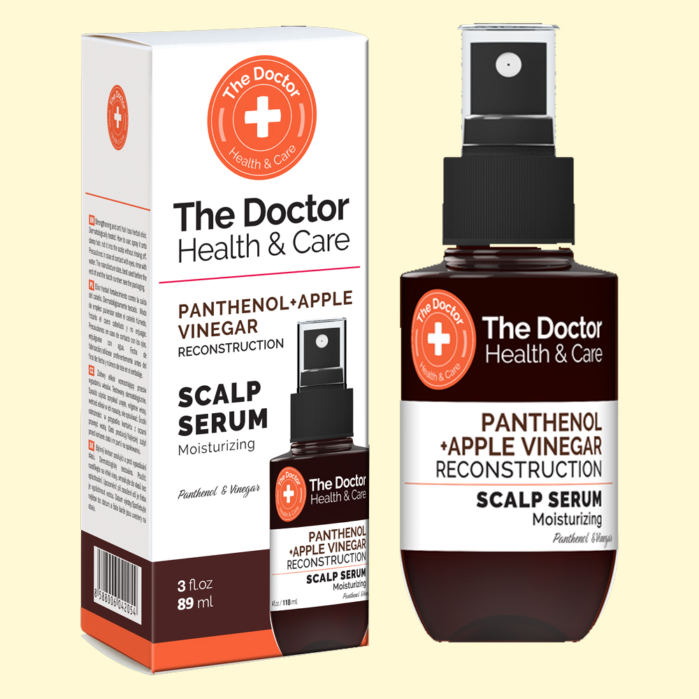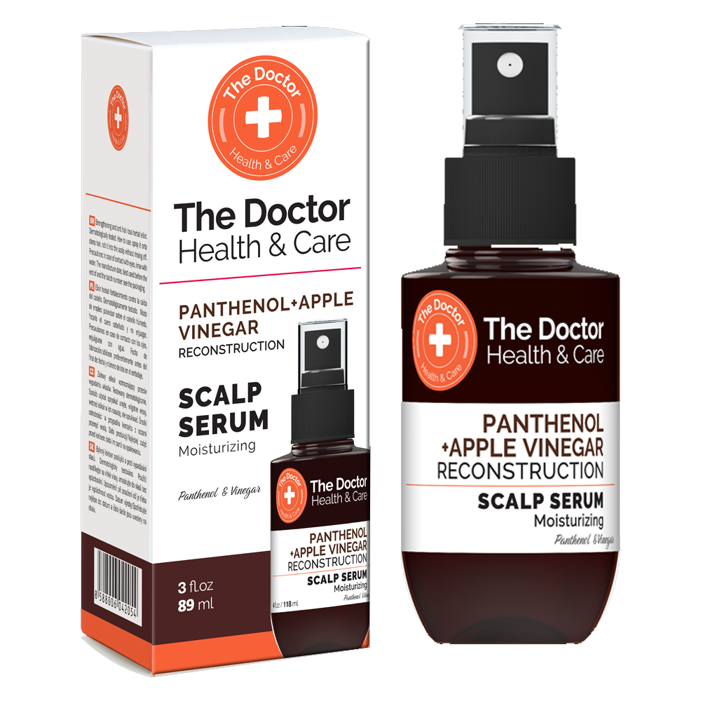 The Doctor Health&Care Panthenol + Apple Vinegar Hair Serum Reconstruction 89ml - für geschädigtes Haar und Kopfhaut, die zu Trockenheit und Schuppenbildung neigt. Enthält Panthenol und Apfelessig. Versorgt die Kopfhaut mit Feuchtigkeit und beseitigt das Gefühl von Trockenheit und Spannungsgefühl.