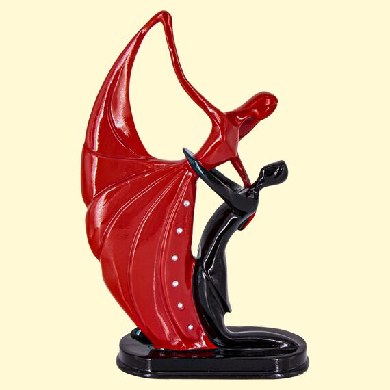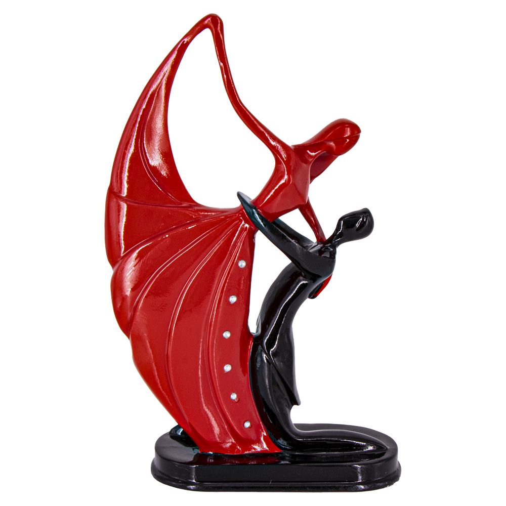 Dekostatuette in Rot und Schwarz - Tanzendes Paar, mit Strasssteinen, aus Polymerharz, 30 x 18 cm