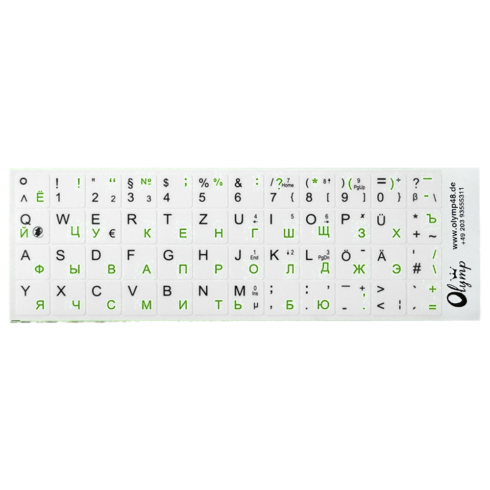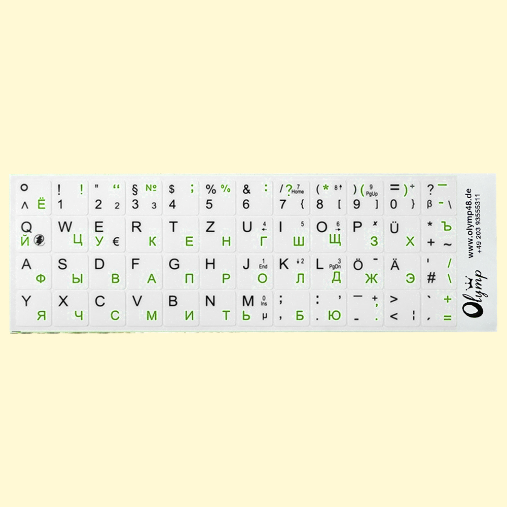Tastaturaufkleber Deutsch-Russisch, schwarz-grün, weißer Hintergrund