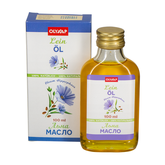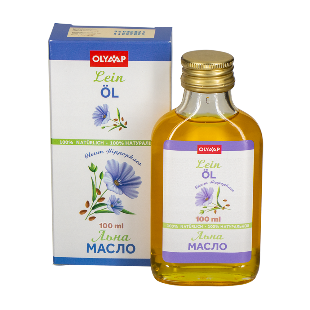 Leinsamenöl, 100 ml, mehrsprachige Verpackung: RU, DE, EN, FR, ES, IT