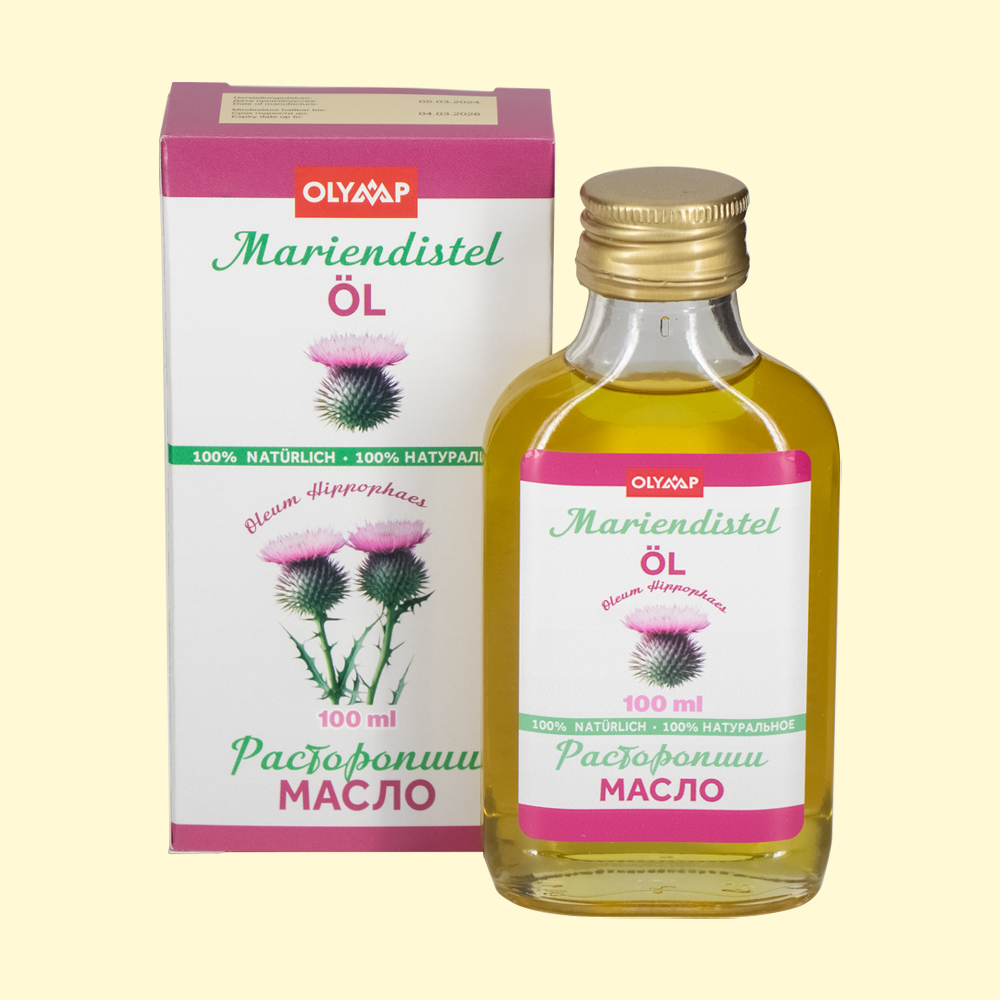 Mariendistelsamenöl, 100 ml, mehrsprachige Verpackung: RU, DE, EN, FR, ES, IT