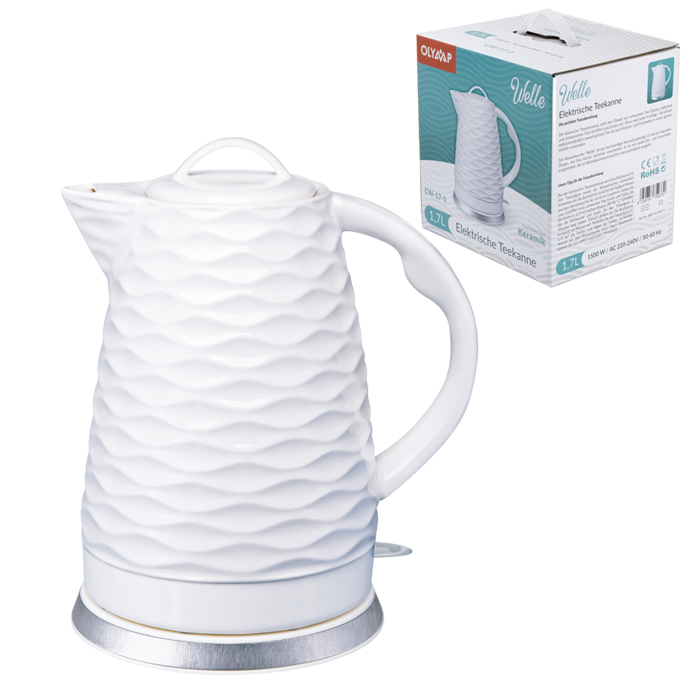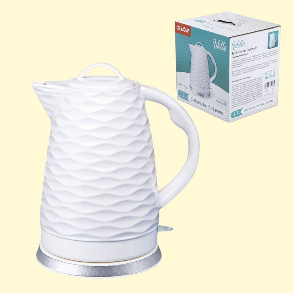 Olymp Elektrischer Wasserkocher aus Keramik „Welle“, 1.7 L, weiß