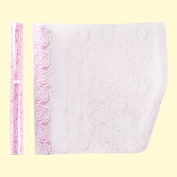 Laminierter Filz "Roses" ist ein rosa gemustertes Verpackungsmaterial, 53 cm breit und 2,7 m lang. Geeignet für Geschenke, Blumensträuße und Dekorationen. Strapazierfähig, wasserfest, aber dennoch weich und flexibel.