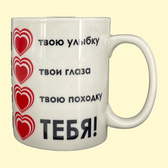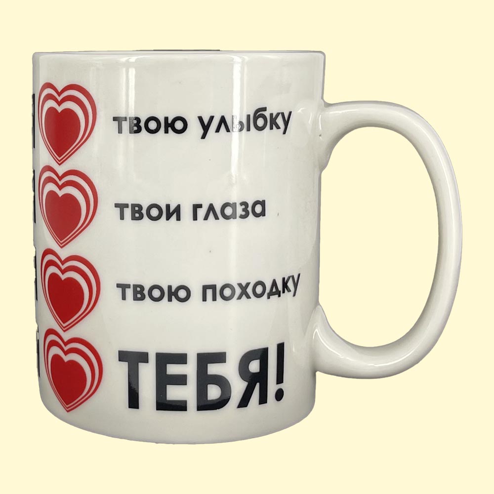 Der Becher "Ich liebe dich" mit einer Füllmenge von 0,4 Litern ist perfekt für romantische Momente und als liebevolles Geschenk. Das charmante Design mit Herzen und Liebesbotschaften macht jede Pause besonders und zeigt, wie viel Ihnen jemand bedeutet.- Aufschrift auf der Rückseite in RU: "Dein Lächeln, deine Augen, dein Gang, dich".