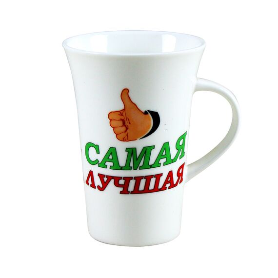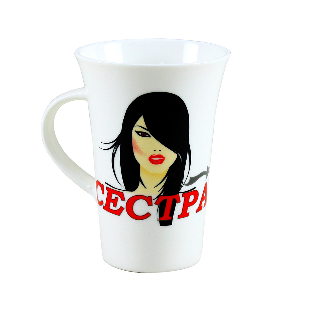 Der Becher ist aus umweltfreundlichem, hochwertigem Porzellan mit feinem Glanz gefertigt. Er hat ein attraktives thematisches Design in Form der Aufschrift auf russisch "Schwester". Dieser stylische Becher ist ideal für den täglichen Bedarf - im Büro oder Zuhause.
