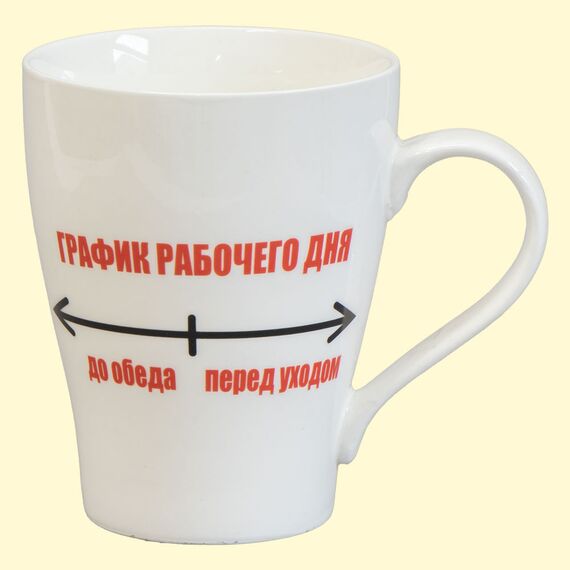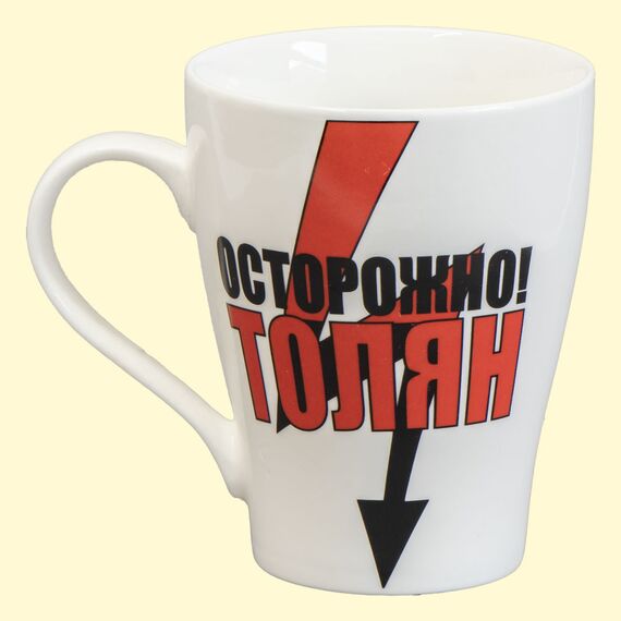 Der Becher ist aus umweltfreundlichem, hochwertigem Porzellan mit feinem Glanz gefertigt. Er hat ein attraktives thematisches Design in Form eines Schriftzuges auf russisch "Toljan".