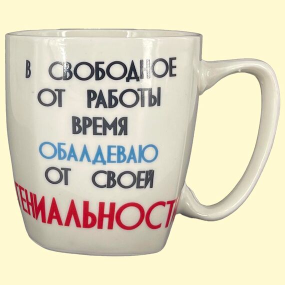 • Aufschrift auf der Rückseite in RU: "In meiner Freizeit bin ich erstaunt über mein Genie".