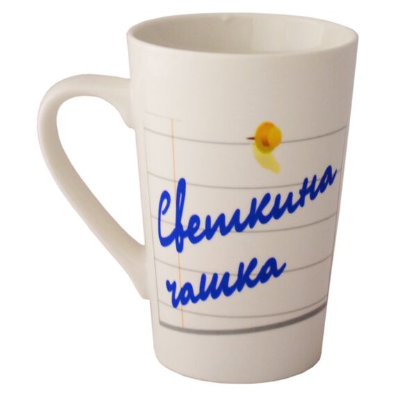 Der Becher ist aus umweltfreundlichem, hochwertigem Porzellan mit feinem Glanz gefertigt. Er hat ein attraktives thematisches Design in Form der Aufschrift auf russisch "Svetkas Tasse". Dieser stylische Becher ist ideal für den täglichen Bedarf - im Büro oder Zuhause.- Aufschrift in RU: "Swetkas Tasse".
