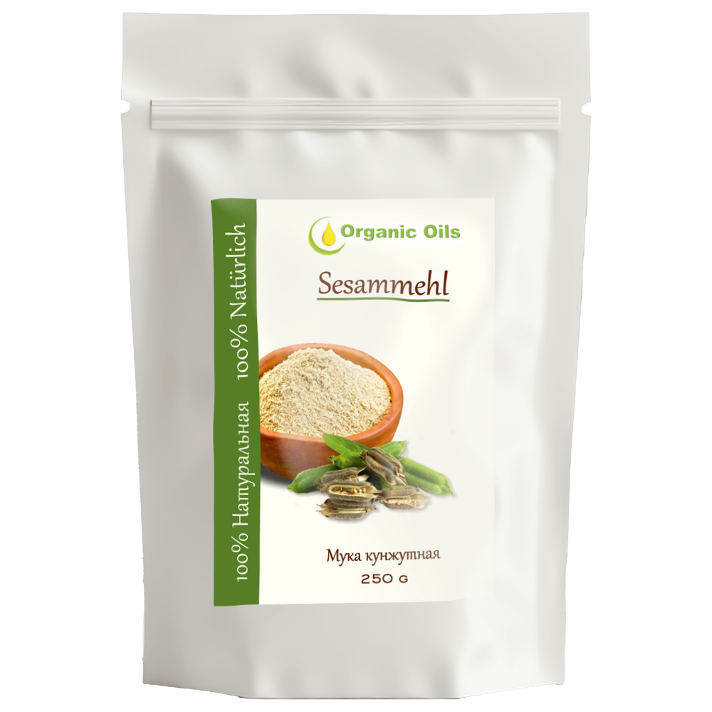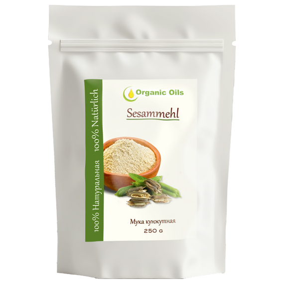 Sesammehl hat einen zarten Sesamgeschmack und ein angenehmes Aroma. Als ausgezeichnete Quelle für Kalzium und Eiweiß trägt Sesammehl zur Stärkung der Knochen und zum Wachstum der Muskelgewebe bei. Es wird empfohlen, um die Funktion des Magen-Darm-Trakts zu verbessern und das Nervensystem zu unterstützen. Sesammehl enthält essentielle Aminosäuren, Eisen, Zink, Kupfer, die Vitamine E, A, T, die B-Gruppe, Kalzium, Magnesium, Kalium, Selen sowie ungesättigte Fettsäuren. Es wird für die Zubereitung von Keksen, Torten und Brot verwendet und zu Suppen, Joghurts und Shakes hinzugefügt.