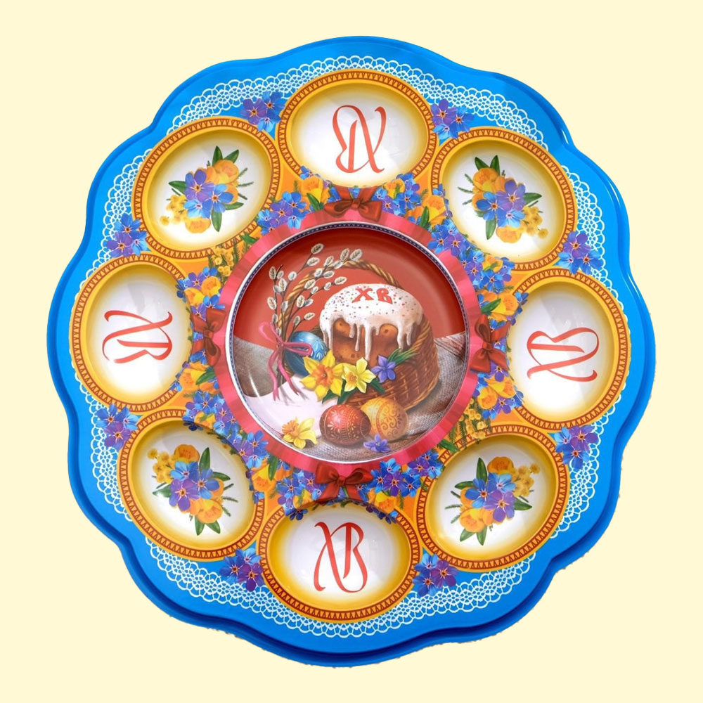 Der Osterständer ist für die festliche Dekoration Ihres Tisches am Hellen Tag der Ostern vorgesehen. In der Mitte des dekorativen Ständers befindet sich eine Vertiefung für den Osterkuchen mit einem Durchmesser von 9,5 cm, und entlang des Randes gibt es 8 Löcher für Ostereier. Der Durchmesser des dekorativen Ständers beträgt 25 cm.