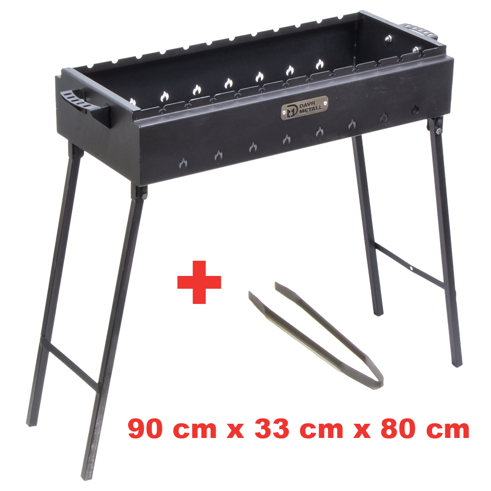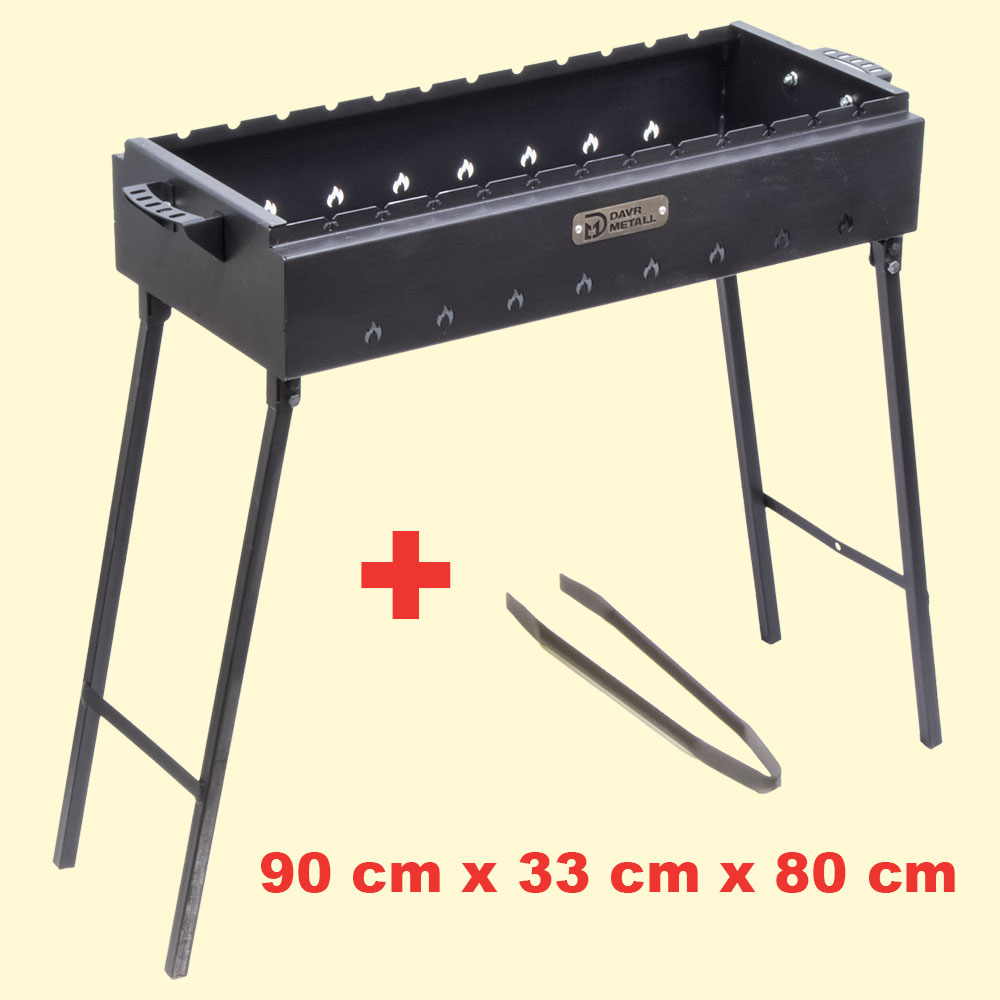 Mangal mit faltbaren Beinen und Zangen LBH: 90 x 33 х 80 cm, aus 2 mm Stahl *