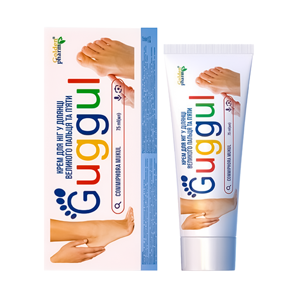 Die GUGGUL Fußcreme für den Bereich der Großzehe und Ferse lindert Spannungsgefühle und Unbehagen beim Gehen und trägt zur Erleichterung in diesen Bereichen bei.