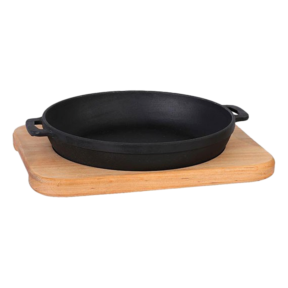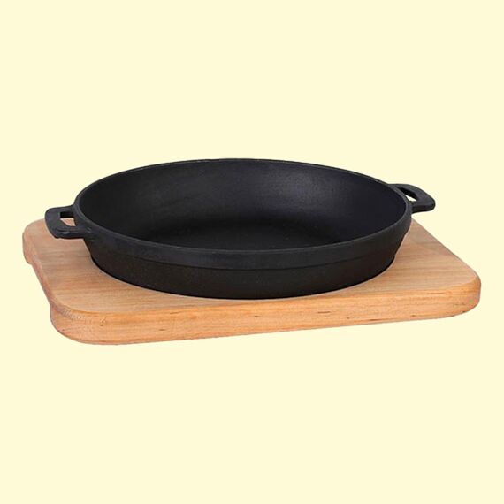 Servierpfanne aus Gusseisen 20x4 cm mit Holzservierbrett