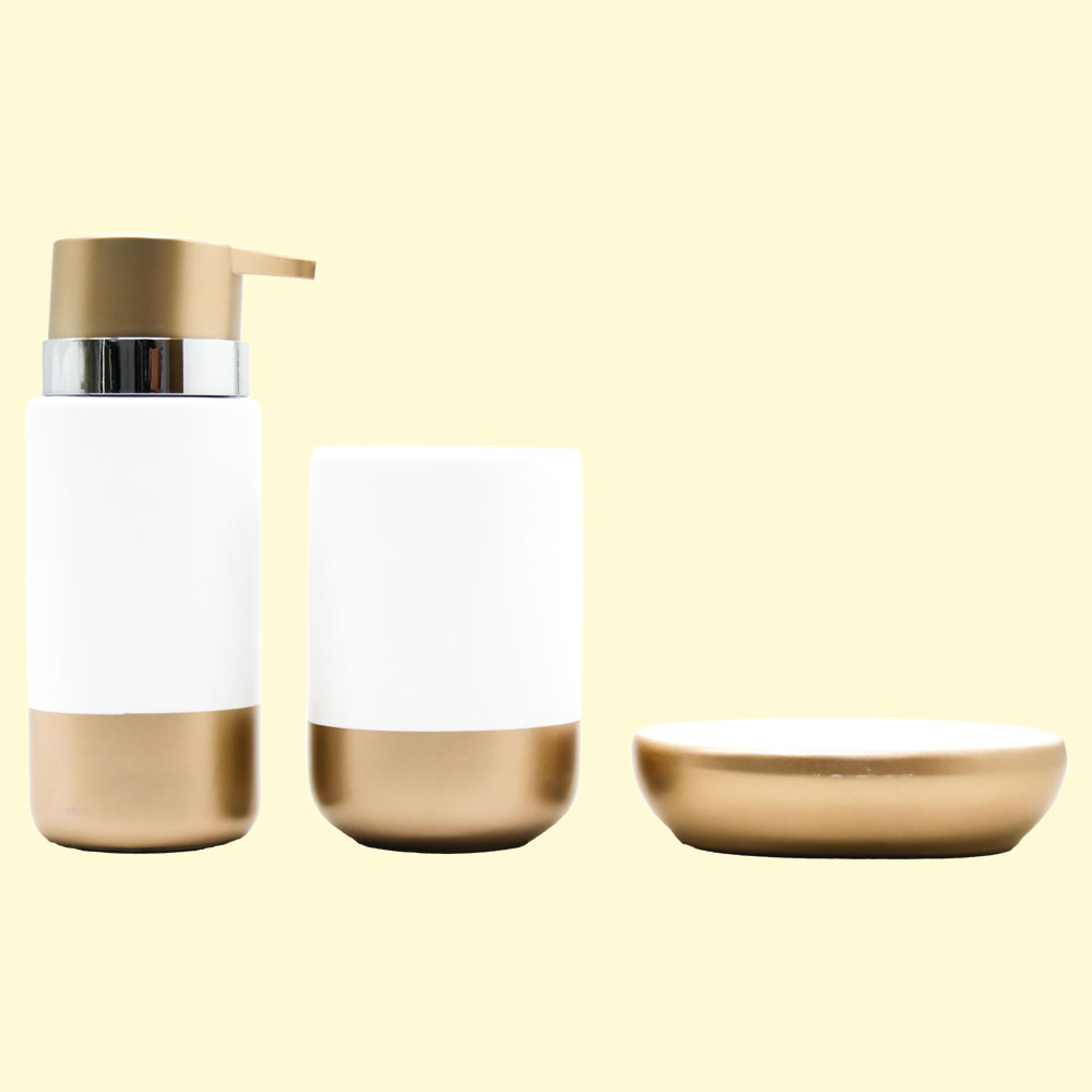 Bad-Accessoire 3er-Set aus Keramik und Plastik, weiß