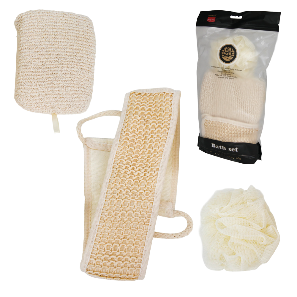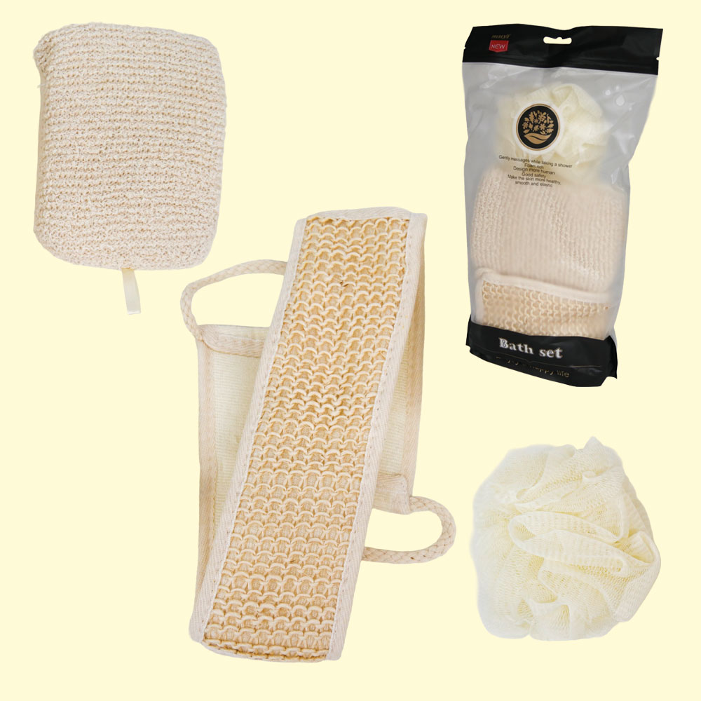 Das Badeset aus Sisal beinhaltet drei natürliche Massage-Schwämme: