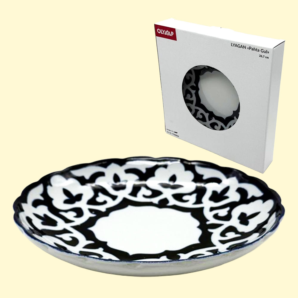 Tiefer Lyagan-Teller "Pahta Gul" in Blau – traditionelles usbekisches Geschirr zum Servieren von Plov, Salaten, Obst und mehr.