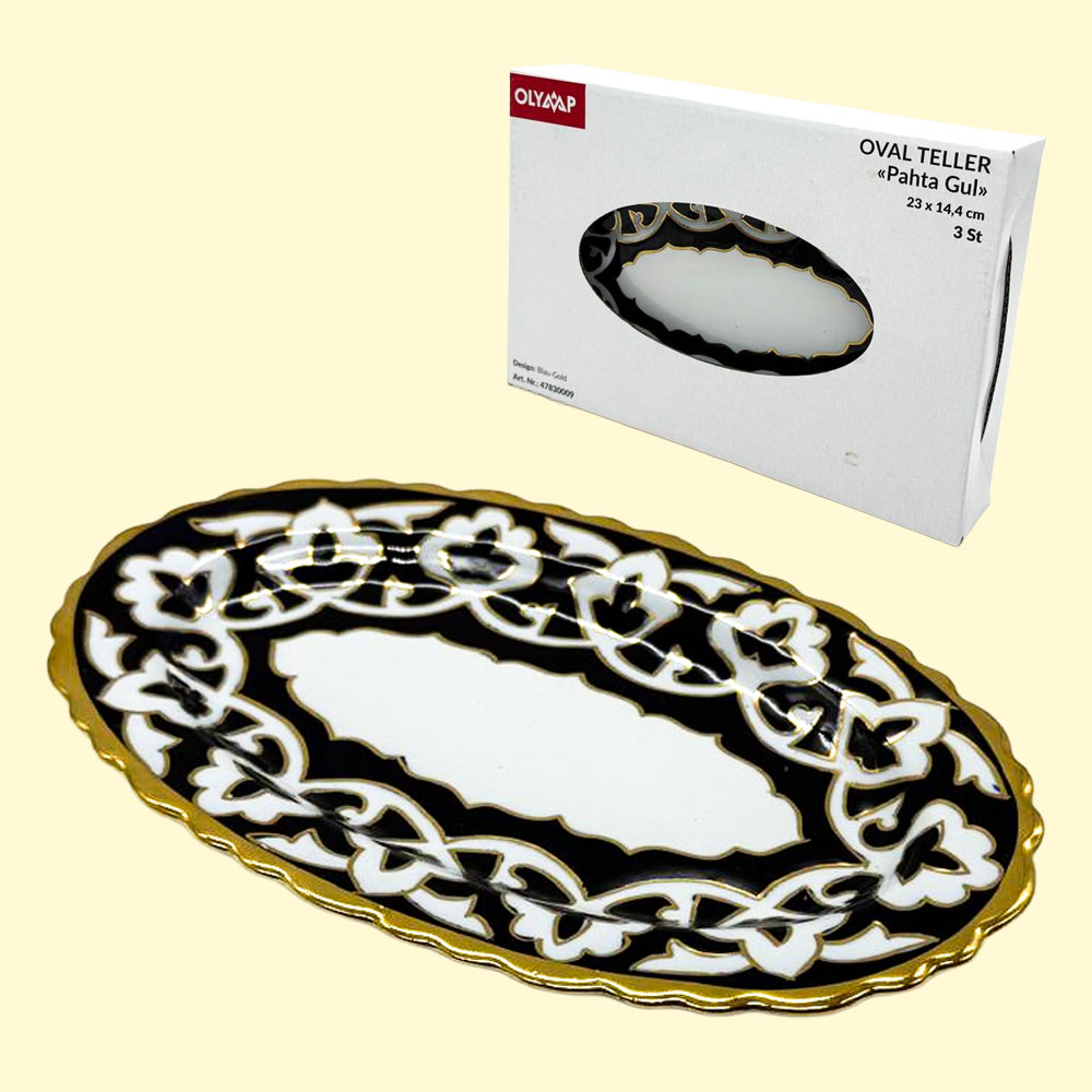 Oval Teller Pahta Gul Blau-Gold 3 St Usbekistan 23 х 14,4 cm