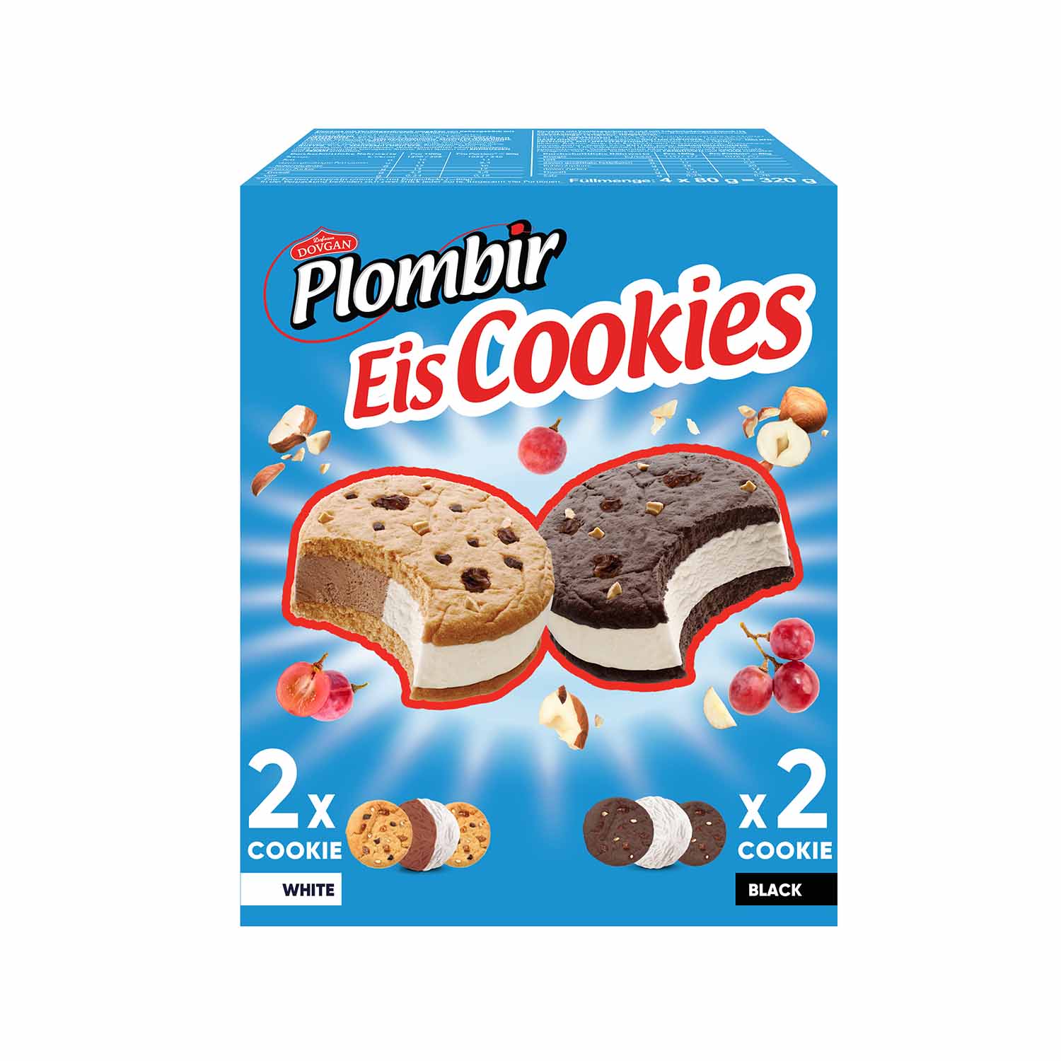 DOVGAN Plombir & Friend Doppelkeks Mix mit Eiscreme Vanille-Schoko 4 x 80g 320 g