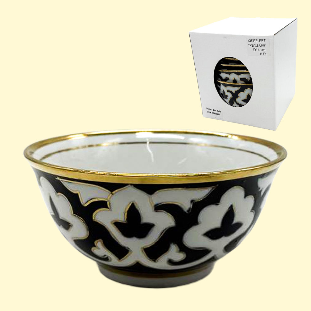 Kisse-Set Pahta Gul 6 St, weiß-blau-gold, Usbekistan, Ø 14 cm