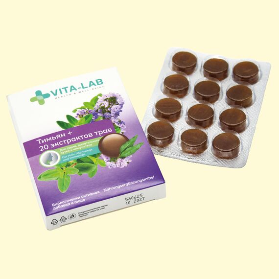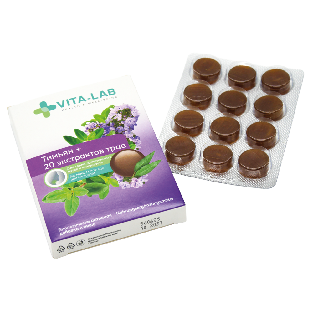 VITA-LAB Halsbonbons mit Thymian und 20 Kräuterextrakten, 12 Stück