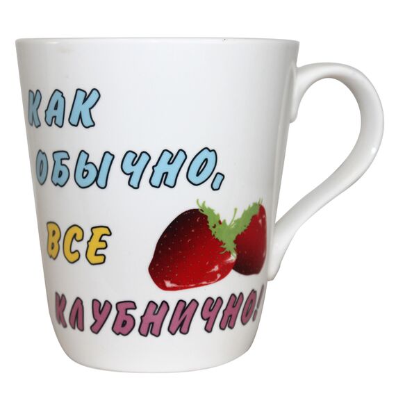 - Aufschrift auf der Rückseite in RU: „Wie immer ist alles Erdbeere!“.