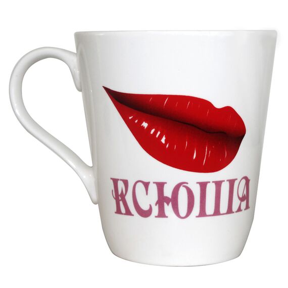 Der Becher ist aus umweltfreundlichem, hochwertigem Porzellan mit feinem Glanz gefertigt. Dieser Becher hat ein attraktives thematisches Design in Form eines Schriftzuges auf russisch "Ksjusha".Dieser stylische Becher ist ideal für den täglichen Bedarf - ob im Büro oder Zuhause.