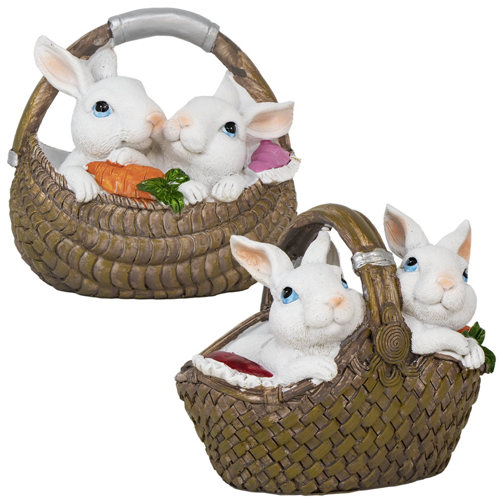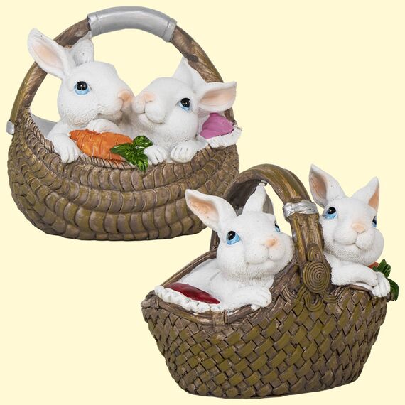 Spardose 2 Hasen im dunklen Korb, 2 Varianten, ca. 12,5 cm