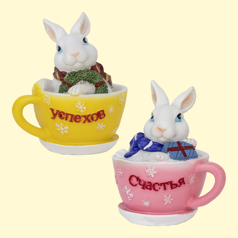 Spardose Hase in der Tasse, 2 Varianten, ca. 13 cm