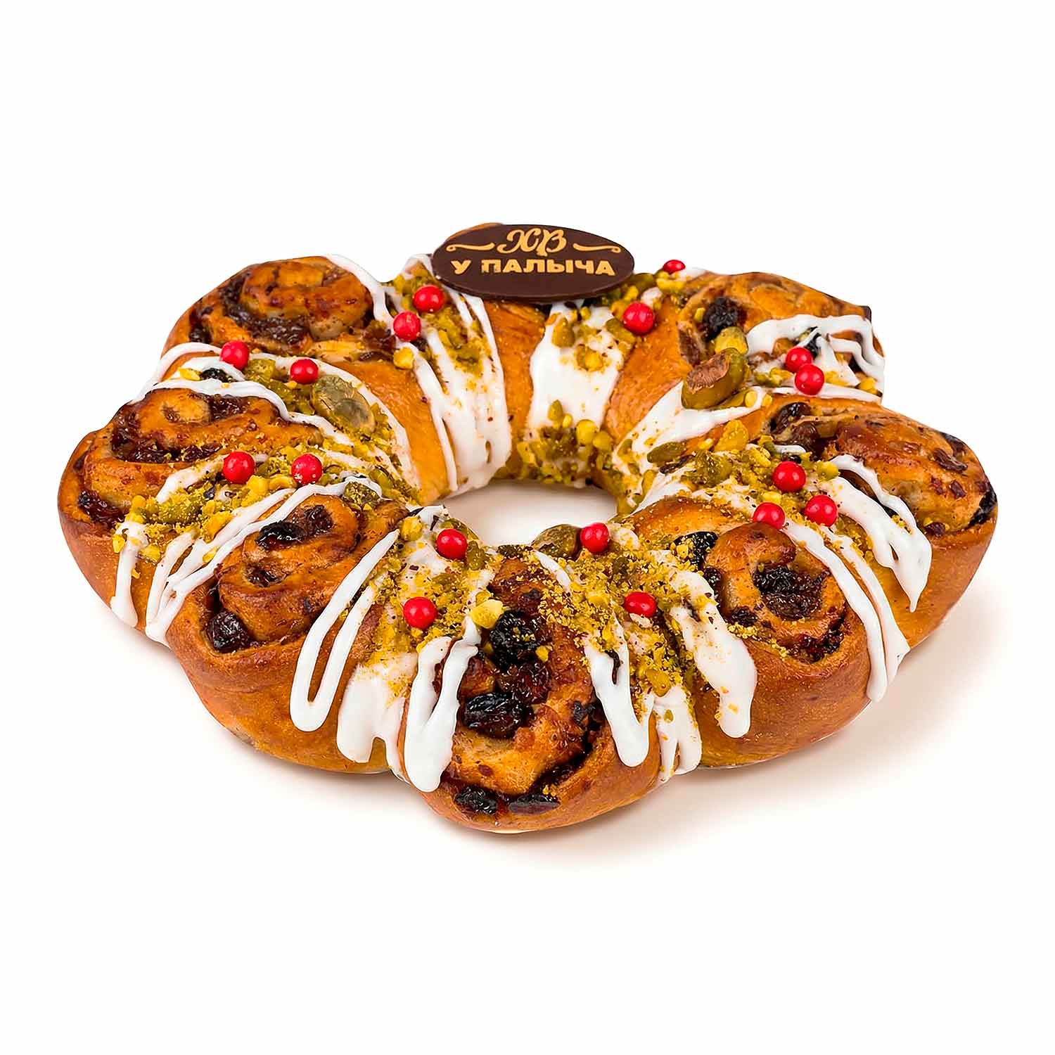 Saftiger Rosinen-Teig trifft auf frische Orangen- und Zitronennoten, knackige Mandeln, Haselnüsse und Pistazien sowie edle dunkle Schokolade. Mit seiner goldbraunen, luftigen Textur und der dezenten Würze von Zimt und Muskatnuss ist dieser Osterkranz der perfekte Mittelpunkt für Ihre festliche Kaffeetafel..