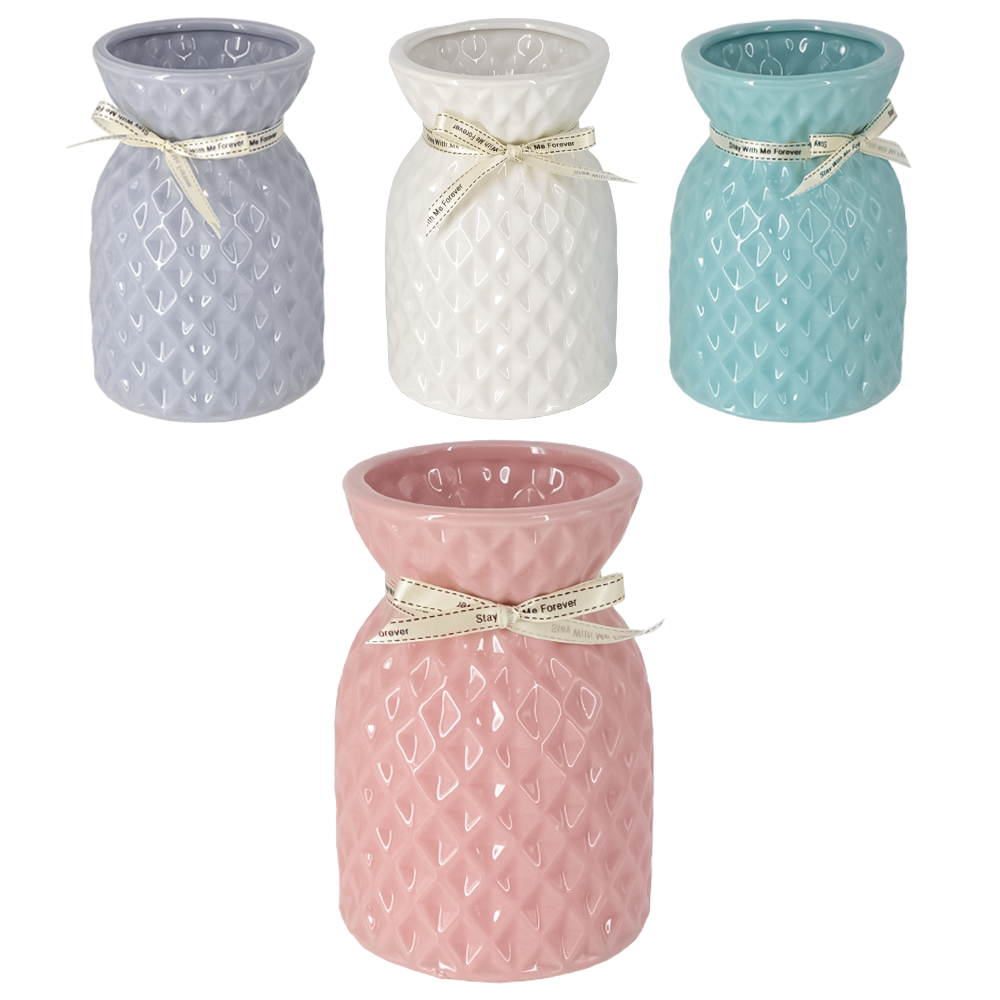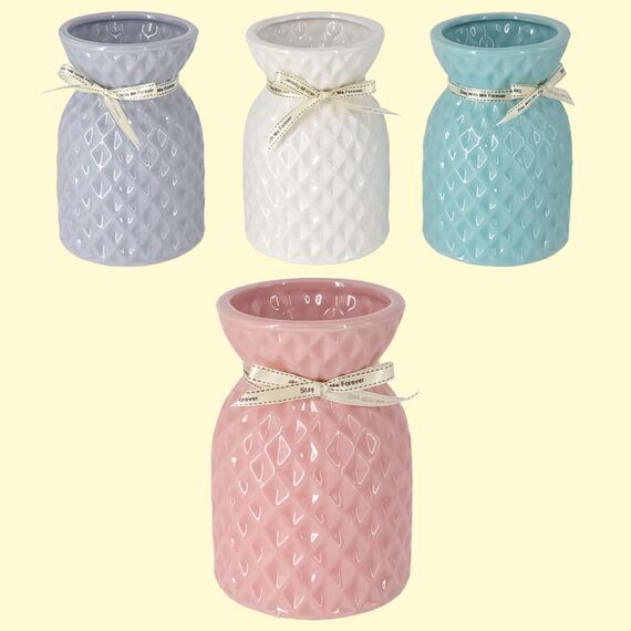 Geprägte Keramikvase mit Zierband 18 x 12 x cm, 4 Farben