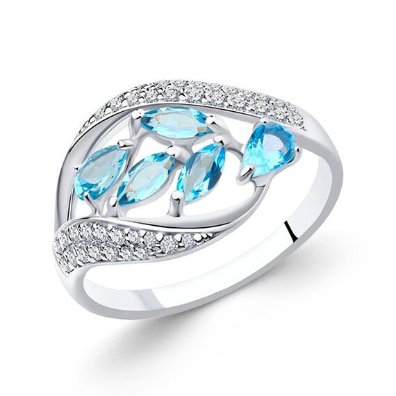 Sokolov Damenring aus 925 Silber mit blauem Topas und Zirkonia Gr-18mm