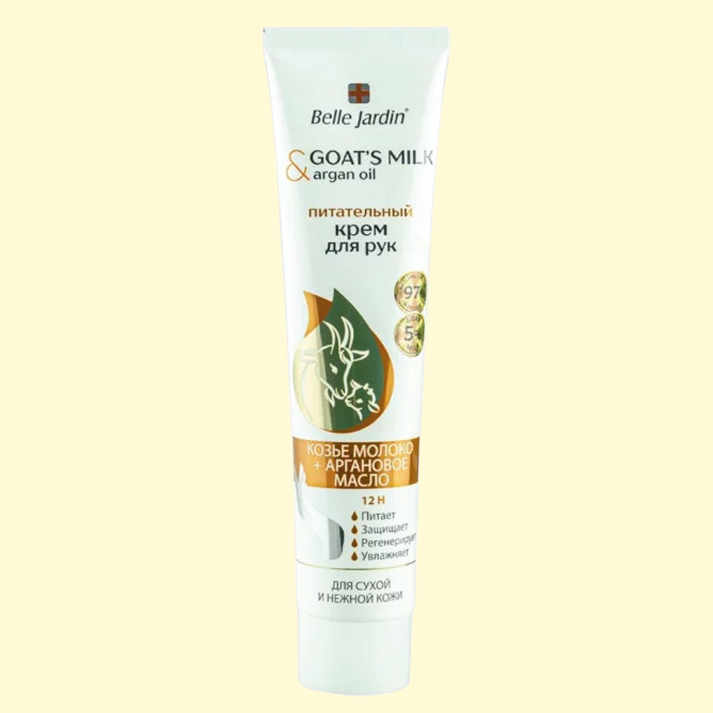Belle Jardin Pflegende Hand- und Nagelcreme mit Ziegenmilch und Arganöl, 125 ml
