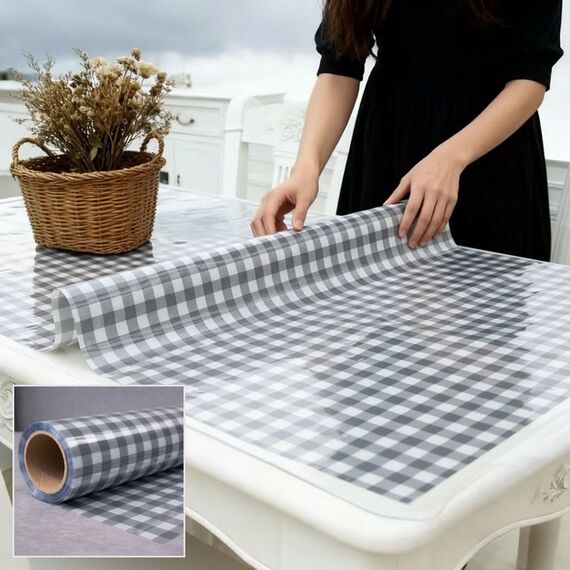 Transparente PVC-Folie mit dekorativem Muster — die perfekte Lösung zum Schutz Ihres Tisches und zur Erhaltung seines Aussehens.