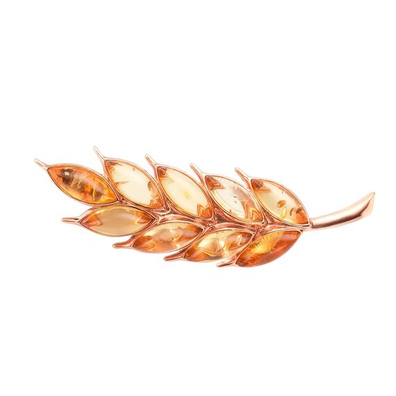 Brosche aus vergoldetem 925 Silber in Form einer Weizenähre mit Bernsteinen